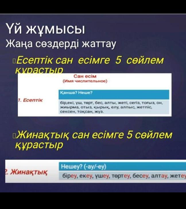 есептік сан есімге 5 сөйлем :