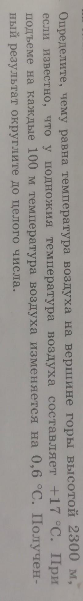 Известно,что на каждые 100 м температура изменяется на 0,6 , следовательно через 1 км в высоту температура понизится на 6 градусов, у нас высота года 2300 м = 2,3 км