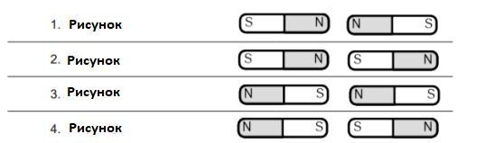 Изучите рисунки! На них показаны магниты (N - север, S - юг). Индикация каких магнитов отталкивает? Kapec? (2 балла)