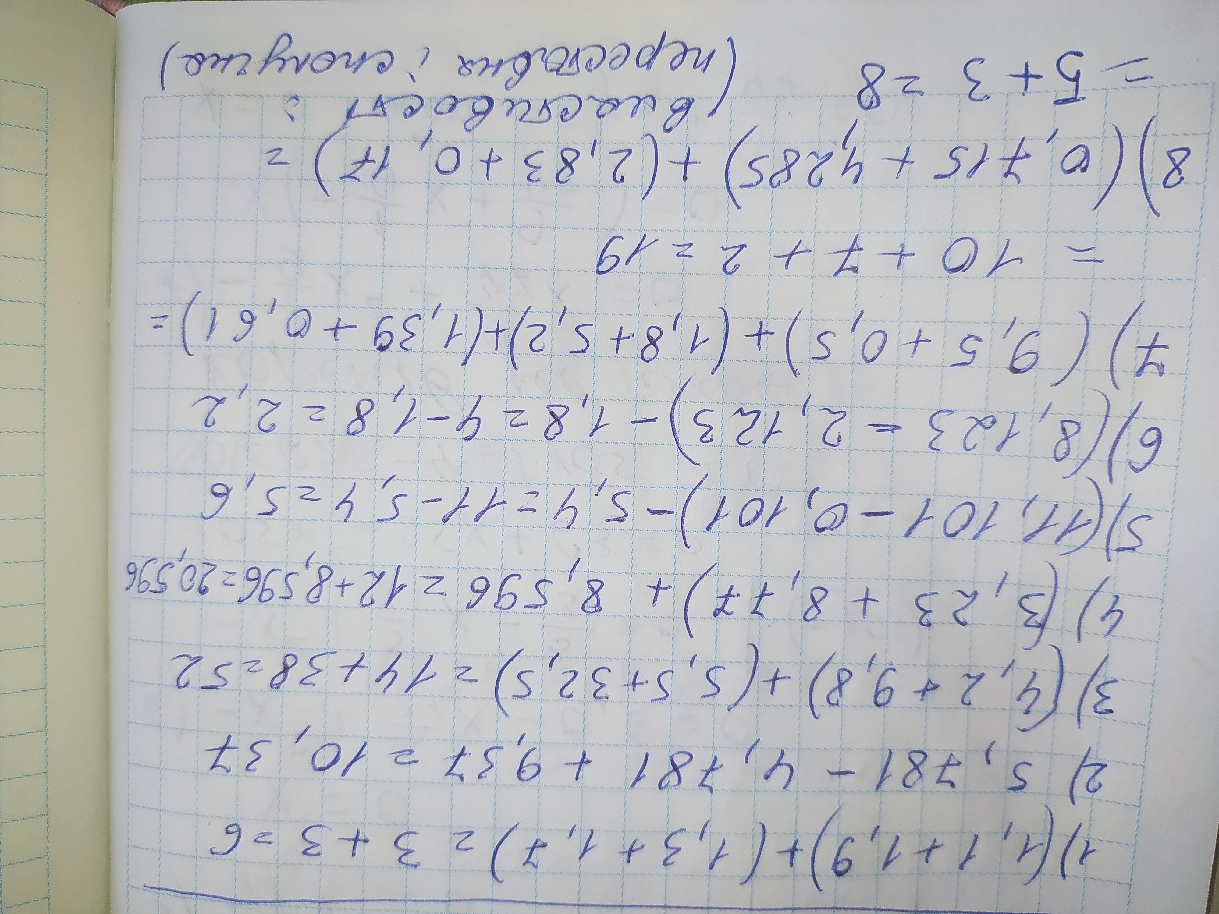 3) 4,2 + 5,5 + 9,8 + 32,5; 4) (3,23 + 8,596) + 8,77;