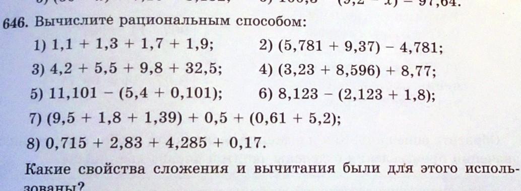 1) 1,1 + 1,3 + 1,7 + 1,9; 2) (5,781 + 9,37) - 4,781;