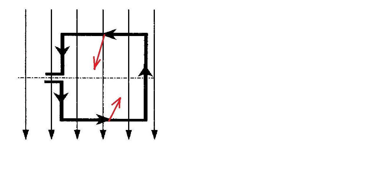 В однородном магнитном поле находится рамка, по которой начинает течь ток. Как направлена сила, действующая на верхнюю сторону рамки? Покажите на рисунке пожалуйста.
