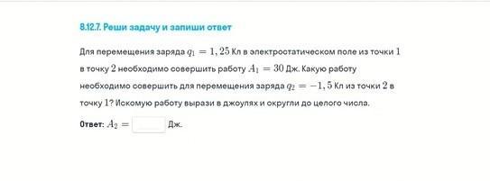 q1=1.25 Кл A1=30 Дж q2= -1.5 Кл A2=?