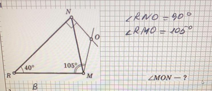 235-180=55(это будет градусом углов MNO и NMO вместе взятых)