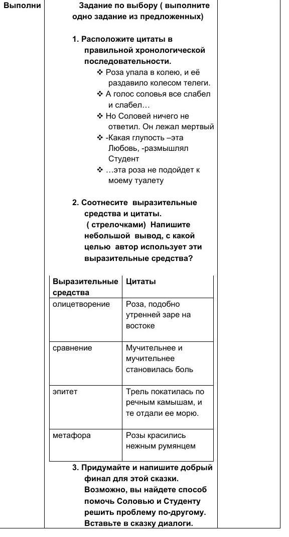 1.а голос все слабел. 2.но соловей лежал мёртвый.3.эта роза не подойдёт.4.роза упала в колею.5.какая глупость любовь.