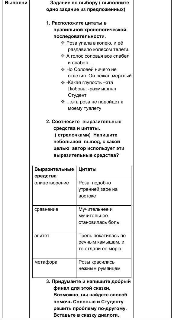 1.а голос все слабел2.соловей ничего не ответил3.эта роза не подойдет4.розу раздавили5какая глупость любовь