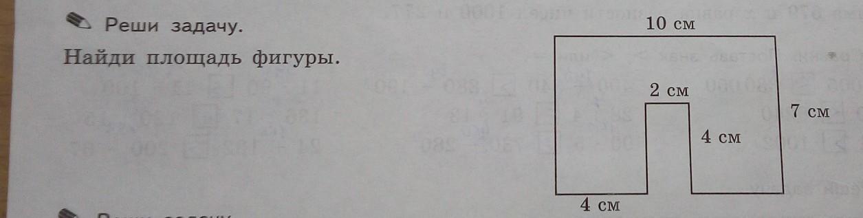 (7 * 10) - (2 * 4) = 70 - 8 = 62 см²
