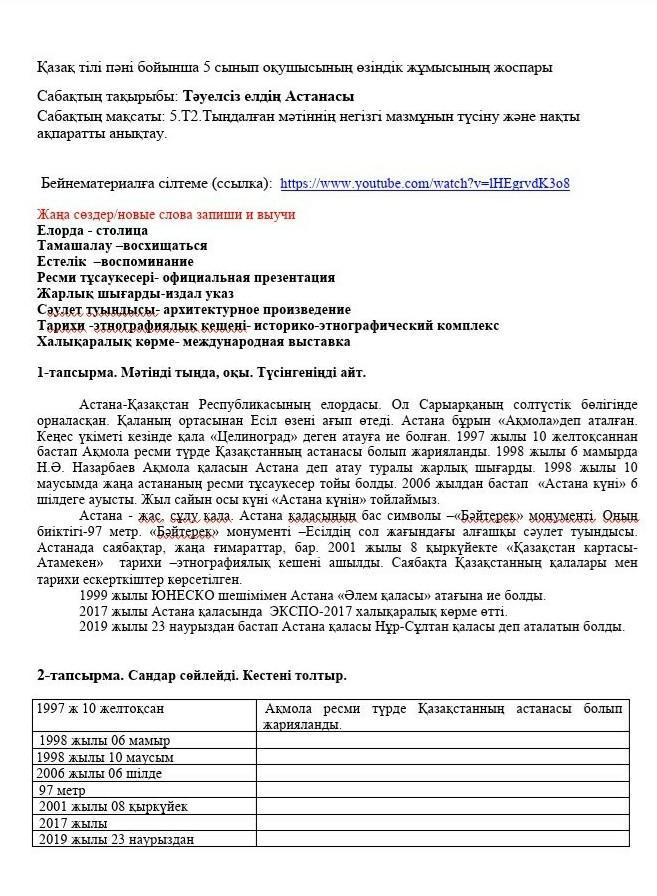 1998 жылы 06 мамыр | Ақмола қаласын Астана деп атау туралы жарлық шығарды.