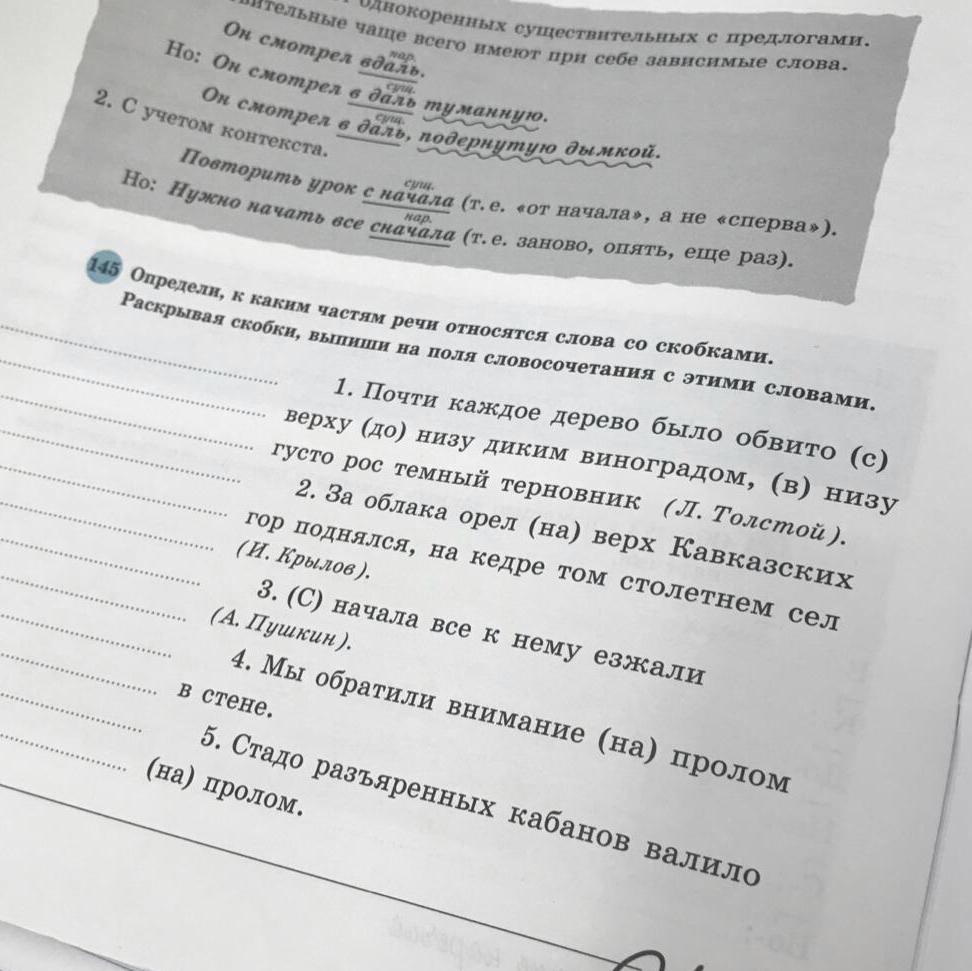 Словосочетания:отбито сверху донизу, внизу рос,поднялся наверх сначала езжали, внимание на пролом,валило напролом.