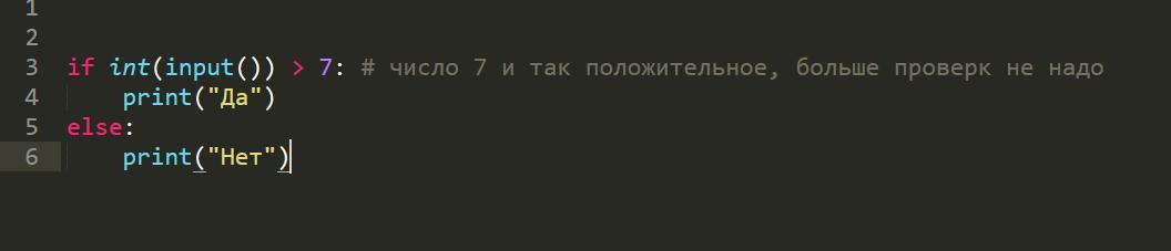 if int(input()) > 7: # число 7 и так положительное, больше проверк не надо