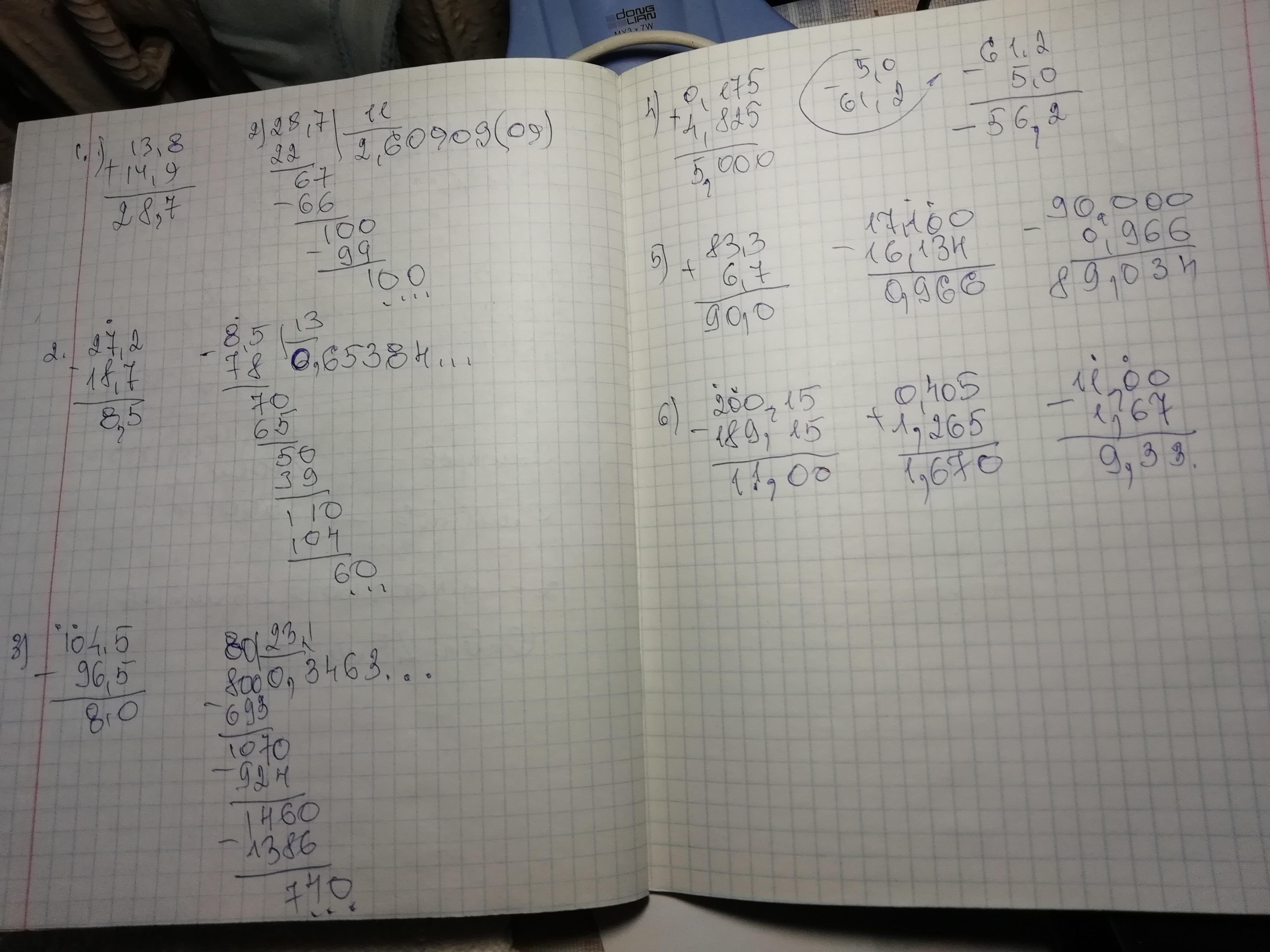 3) (104,5 – 96,5) : 23,1; 4) (0,175 +4,825) - 61,2;