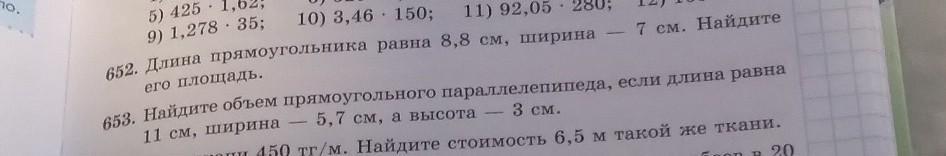 352)Длина прямоугольника равна 8,8см,ширина—7см. Найдите его площадь.
