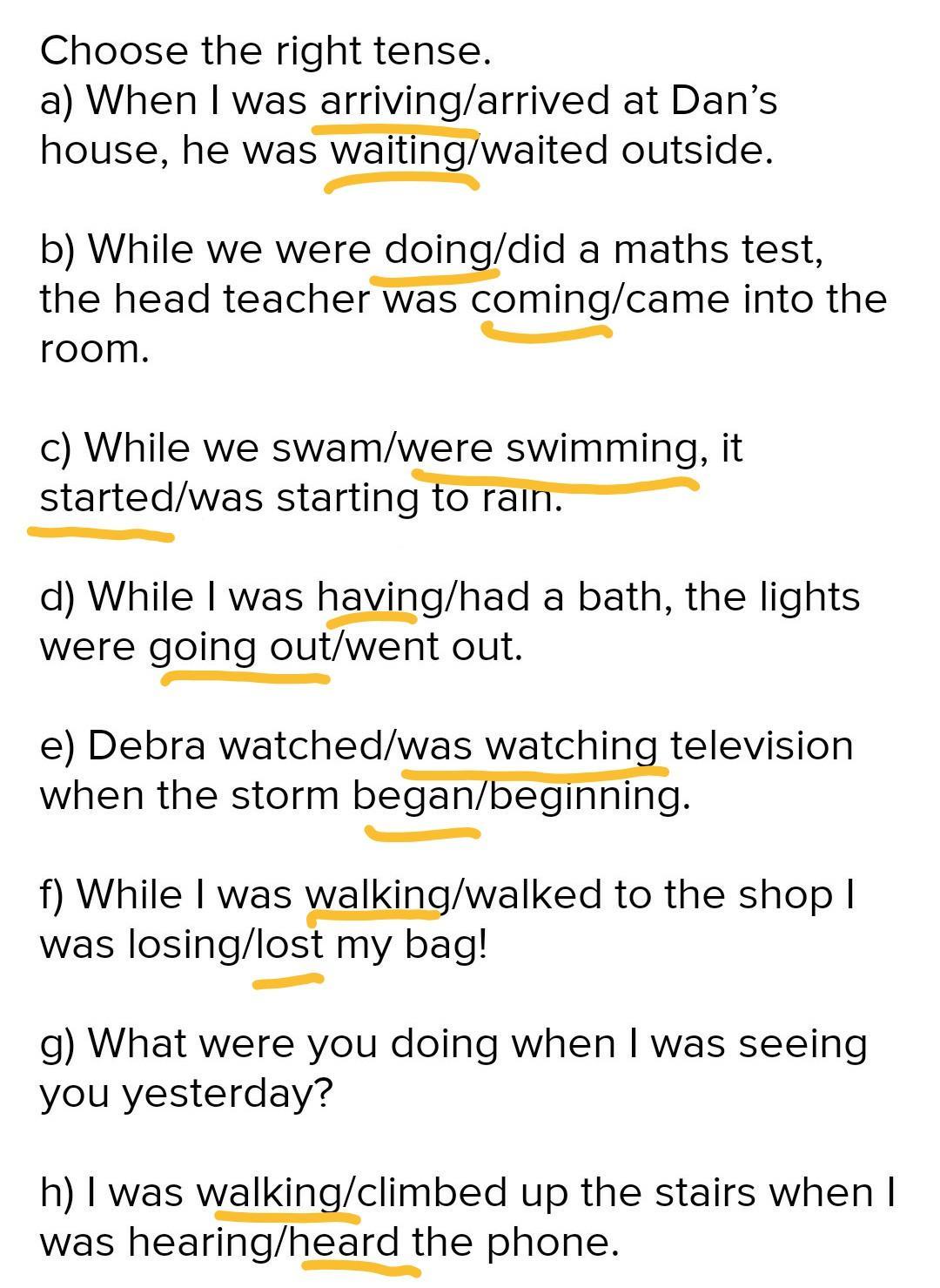 h) I was walking/climbed up the stairs when I was hearing/heard the phone.