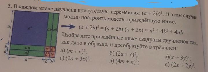 г)(2a+3b)²=(2a)²+(3b)²+2×2a3b=4a²+9b²+4a3b