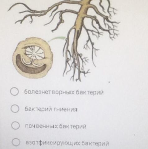 На рисунке изображен корень гороха с клубеньками, образующимися за счёт жизнедеятельности