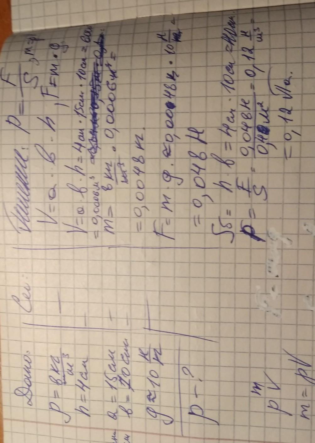 Стальной брусок плотностью 8 кг/м3 высотой 4 см, длиной 15 см и шириной 10 см лежит на поверхности стола так, что оказывает на него наименьшее давление. Рассчитайте давление.
