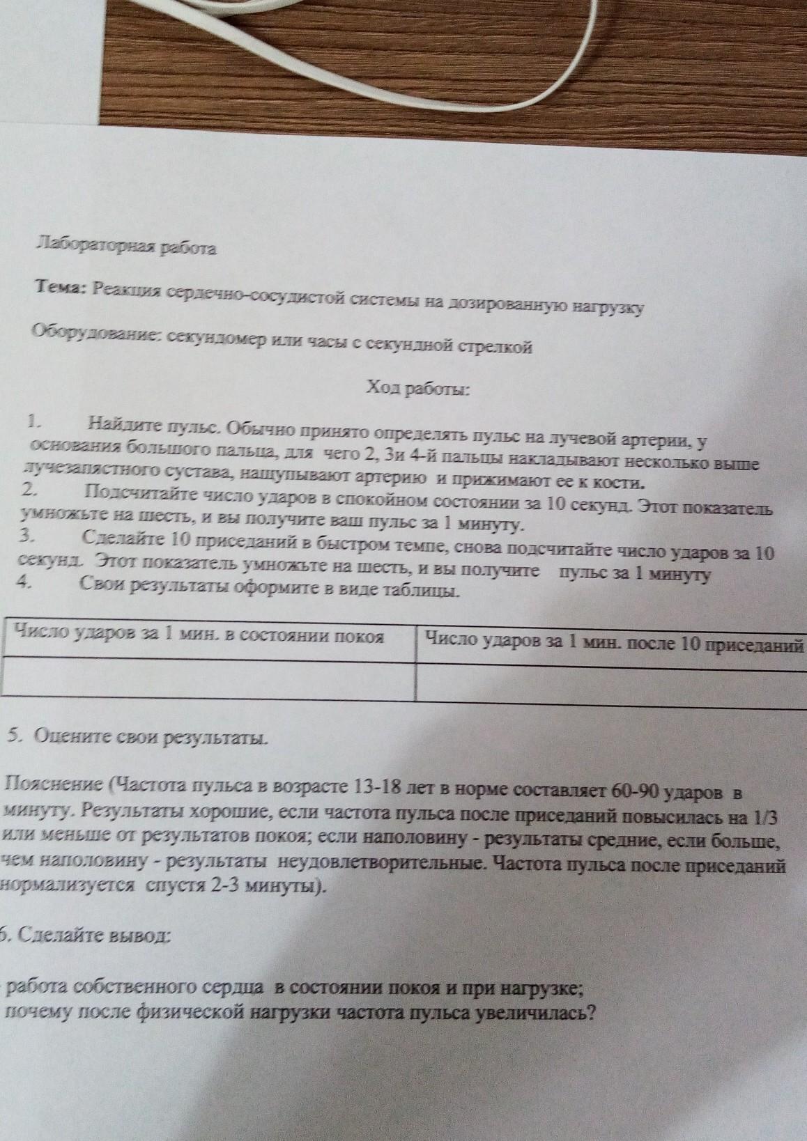 Число ударов за 1 мин в покое: 84 удара в минуту; Число ударов за 1 мин. после 10 приседаний: 120 ударов в минуту. Частота пульса увеличилась после нагрузки, ибо наши ткани требуют гораздо больше кислорода, сердце же начинает быстрее работать и гнать кровь на "заправку" кислородом.
