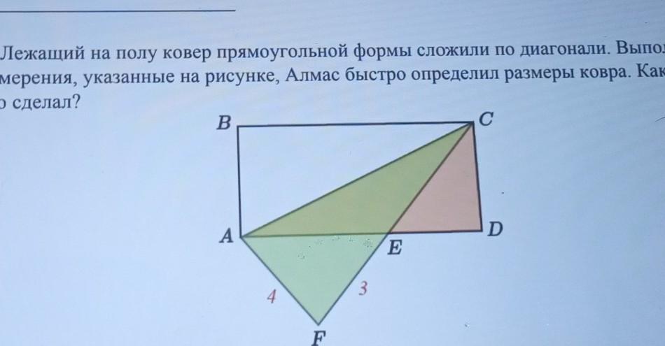 AF/CD=FE/ED=AE/CE, но AF=CD, как паралельние сторони прямоугольника- ковра, поетому ЕD=FE=3
