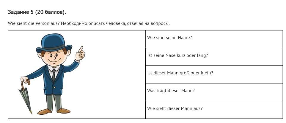 Wie sieht die Person aus? Необходимо описать человека, отвечая на вопросы.