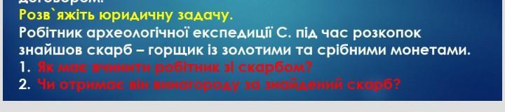 1)как должен поступить работник с сокровищем. 2)получит ли он награду за найденное сокровище.