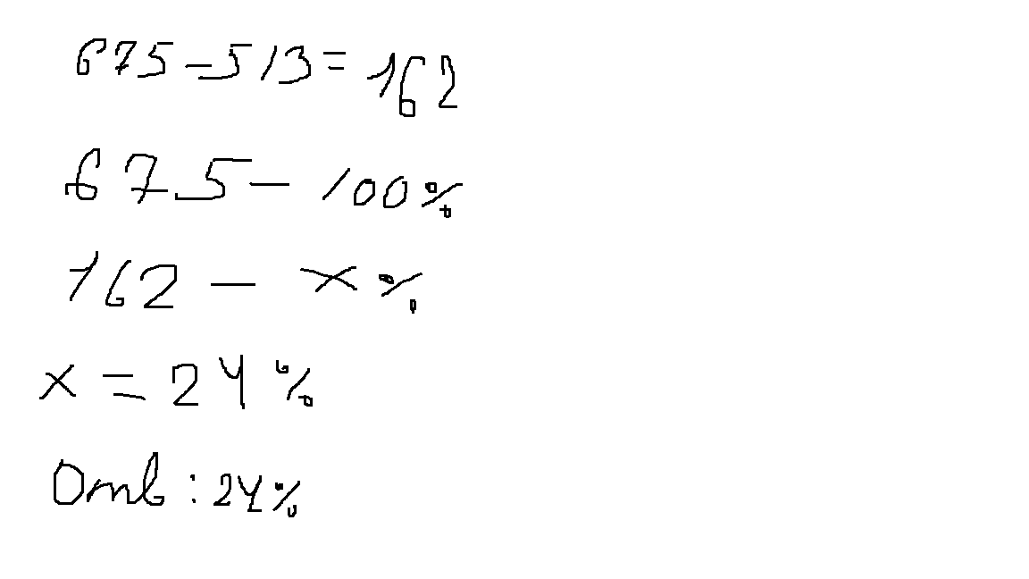 Цена товара понизилась с 675 до 513 рублей.На сколько процентов понизилась цена товара?