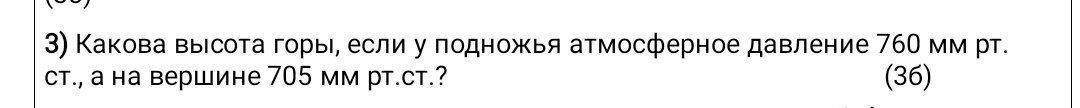 Какова высота горы, если у подножия атмосферное давление 760 мм . рт.ст, а на вершине 750 мм рт.ст.?!