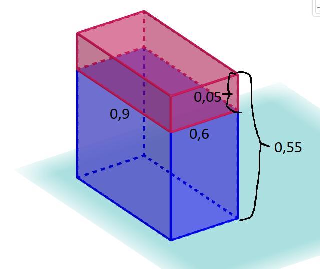 аквариум, длина которого равна 0,9 м, ширина – 0,6 м, высота – 0,55 м, налита вода. Ее уровень ниже верхнего края аквариума на 0,05м. Найди объем воды в аквариуме.