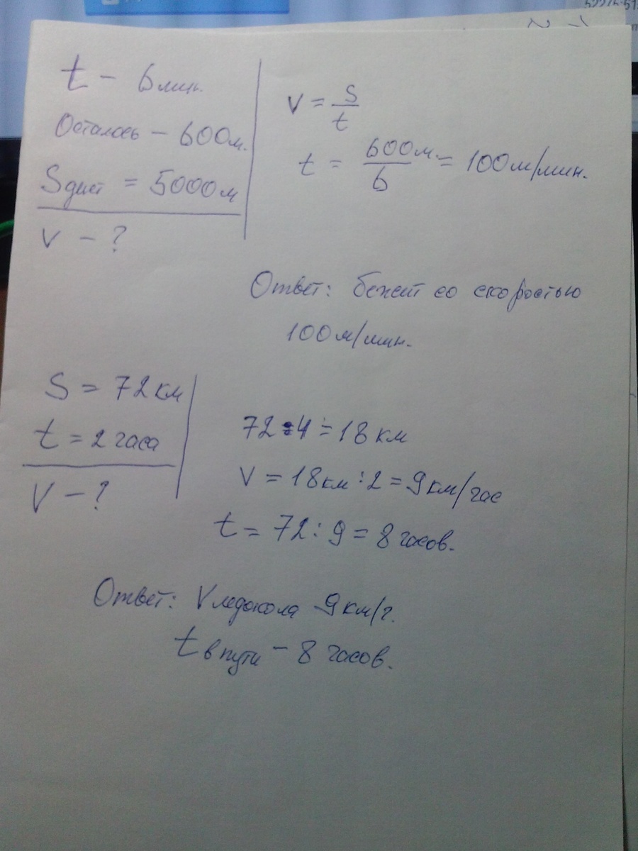 конькобежец бежал 6 мин. После чего ему осталось пробежать 680м. Длина дистанции 5000м. С какой скоростью бежит конько бежец???