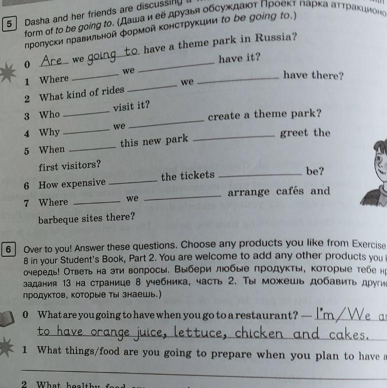 Даша и ее друзья обсуждают проект парка аттрацкионов.Заполните пропуски правильной формой конструкции to be going to.