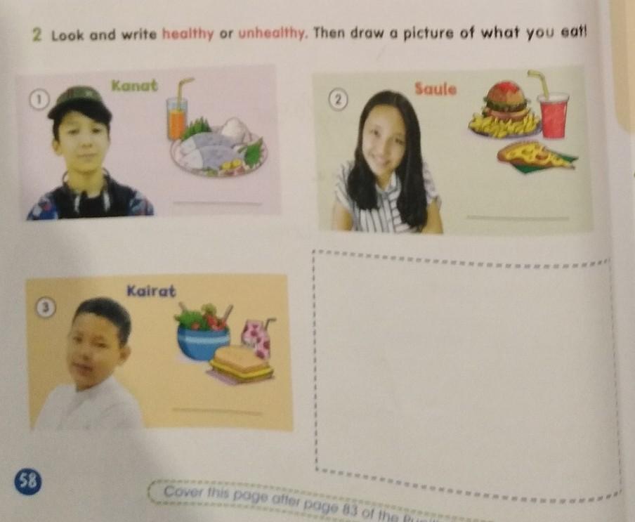 3. Kairat's food healthy, because he has salat, yogurt and sandwich