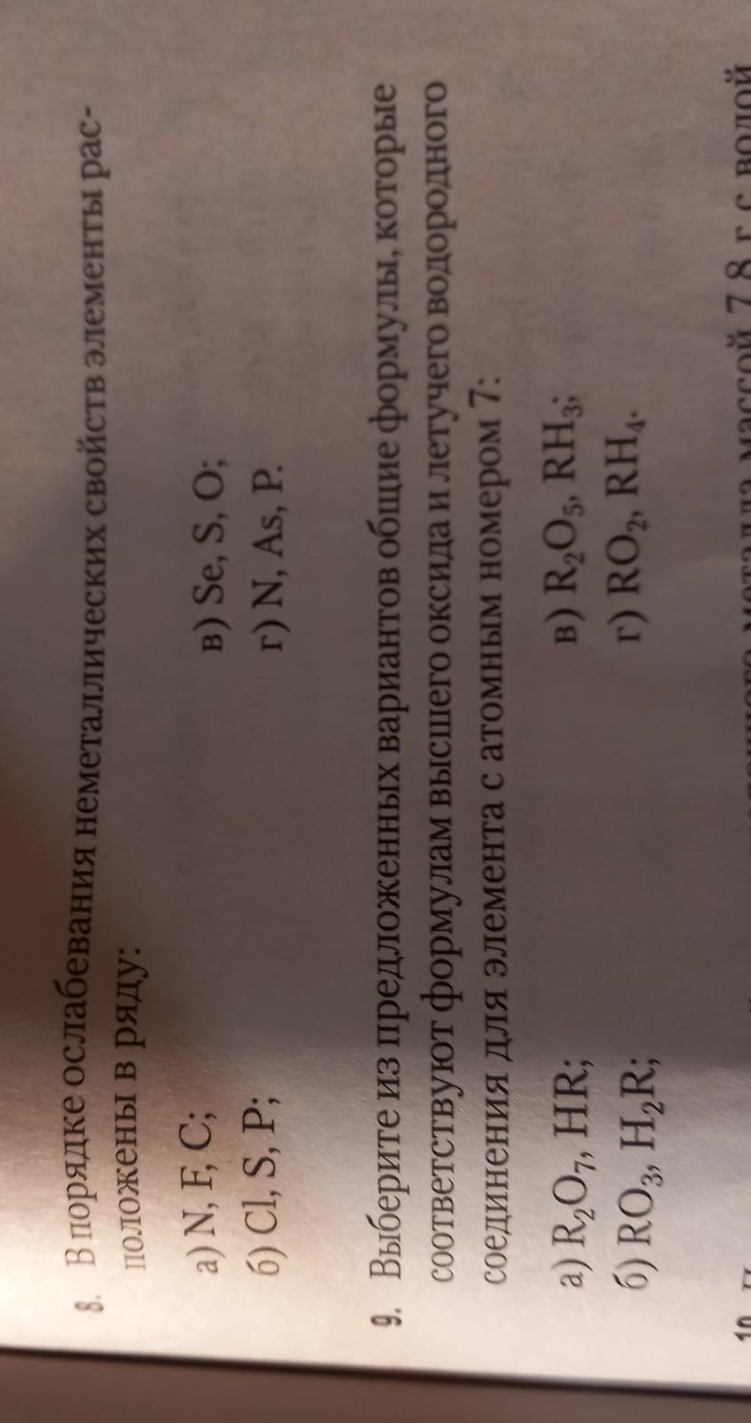 Объяснение:8. Неметаллические свойства в периоде усиливаются слева на право, а в группе ослабевают сверху вниз.