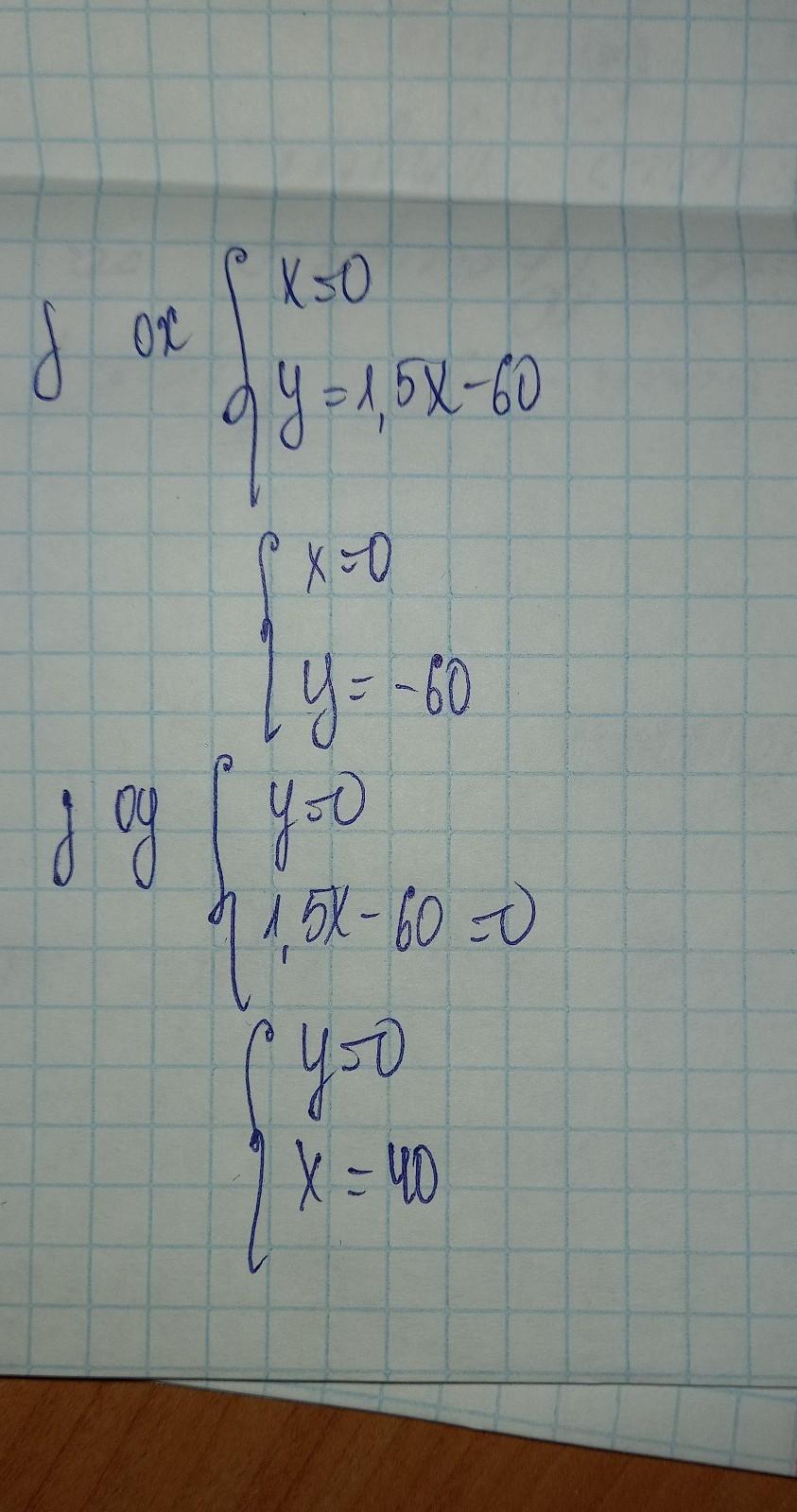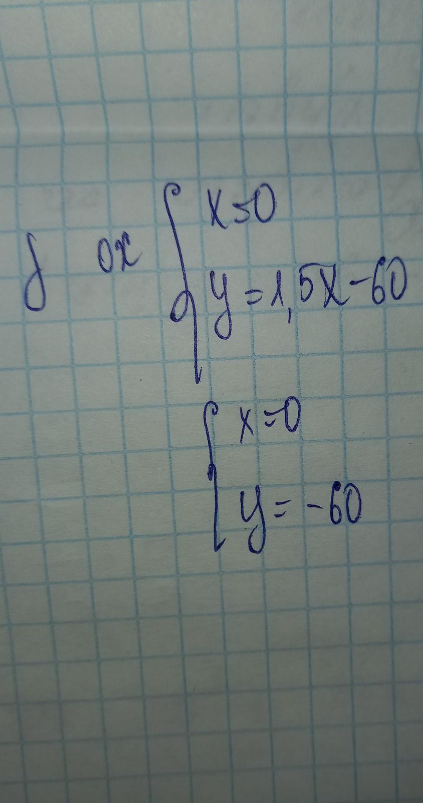 Не виконуючи побудови, знайдіть координати точок перетину з осями координат графіка функції y=1,5x-60.