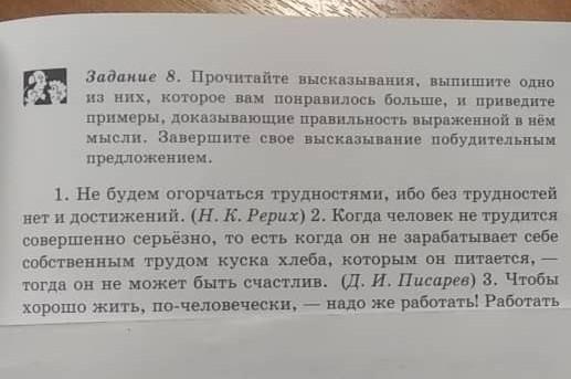 Мне понравилось первое предложение. Ведь это чистая правда. В каждой жизни есть трудности, но не нужно расстраиваться и опускать руки. Нужно твёрдо стоять на своём и доводить все до конца. Превращать свою цель или мечту в реальность. После сильного шторма, за поворотом тебя всегда будет ждать радуга. Надеюсь помогла)