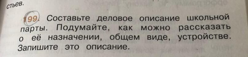 Я люблю школьные парты , за ними очень удобно сидеть. На них делают домашнюю и классную работу. Чаще всего стоит в школе. Деревянная.