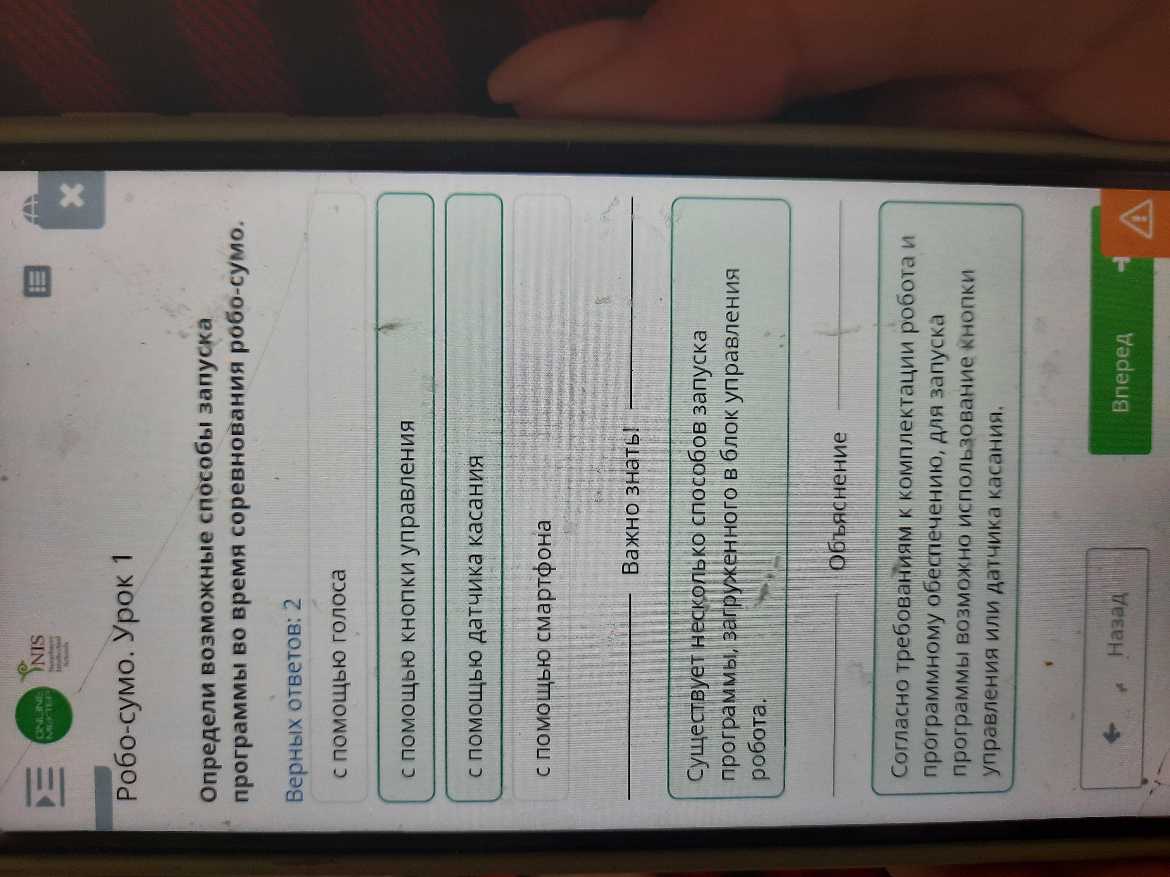 Определи возможные способы запуска программы во время соревнования робо-сумо.