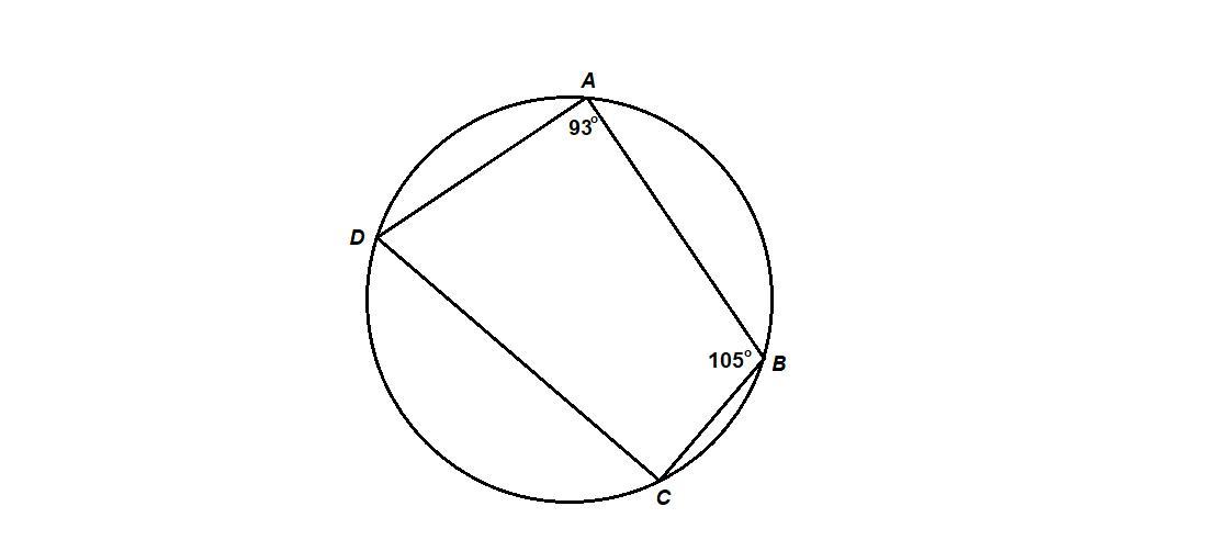 Ну, начнем с того, что в любом четырехугольнике сумма противолежащих углов равна 180, тогда мы можем с лёгкостью их найти подставив наши числа(93 и 105)