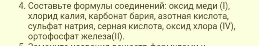 составьте формулы соединений оксид меди 2, хлорид калия, карбонат бария, азотная кислота, сульфат натрия, серная кислота, оксид хлора 4, ортофосфат железа 2, ПОЖАЛУЙСТА ОЧЕНЬ СРОЧНО ДАМ 25БАЛЛОВ