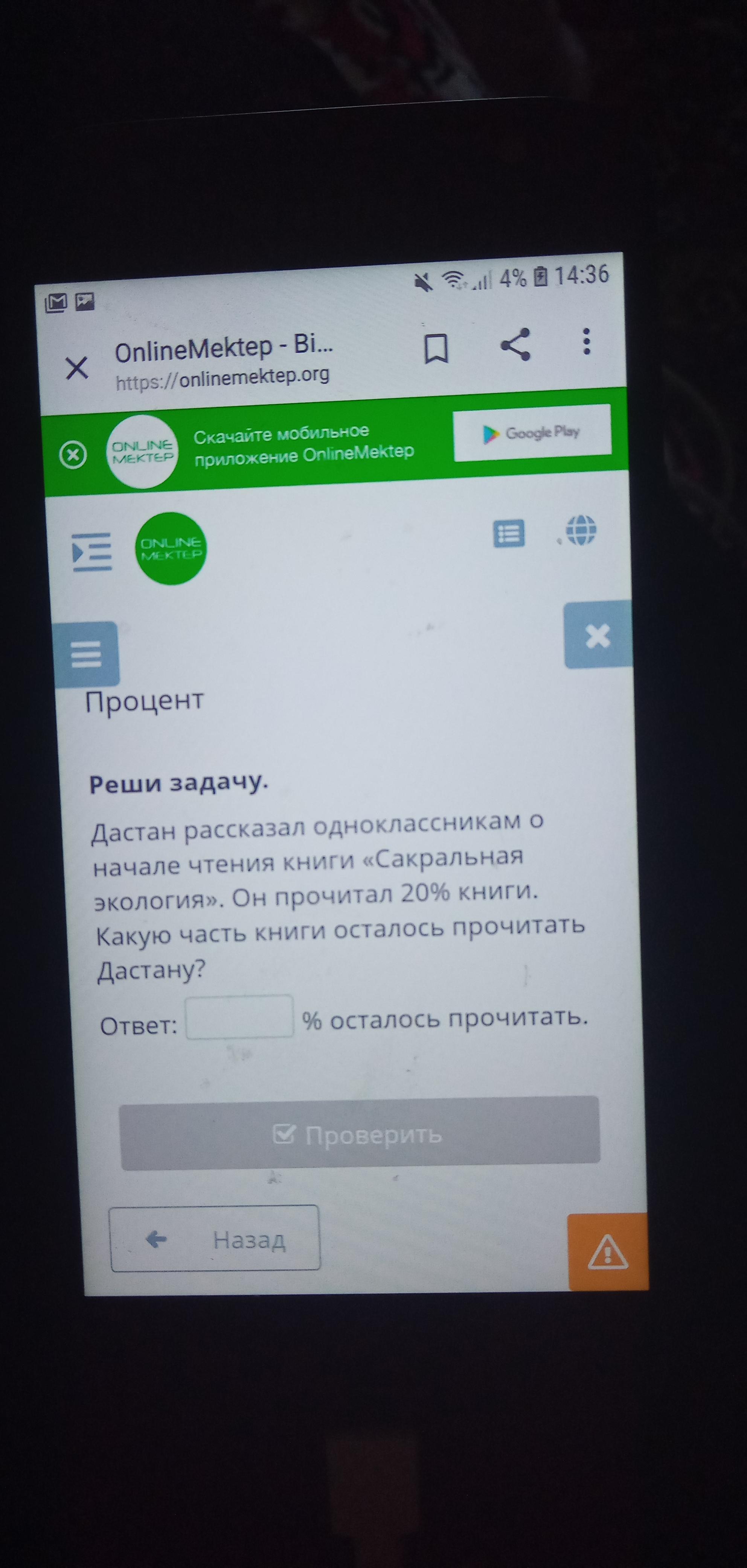 В книге 100% А он прочитал 20% 100-20=80%? Может быть Я чет не уверен(Ω Д Ω)
