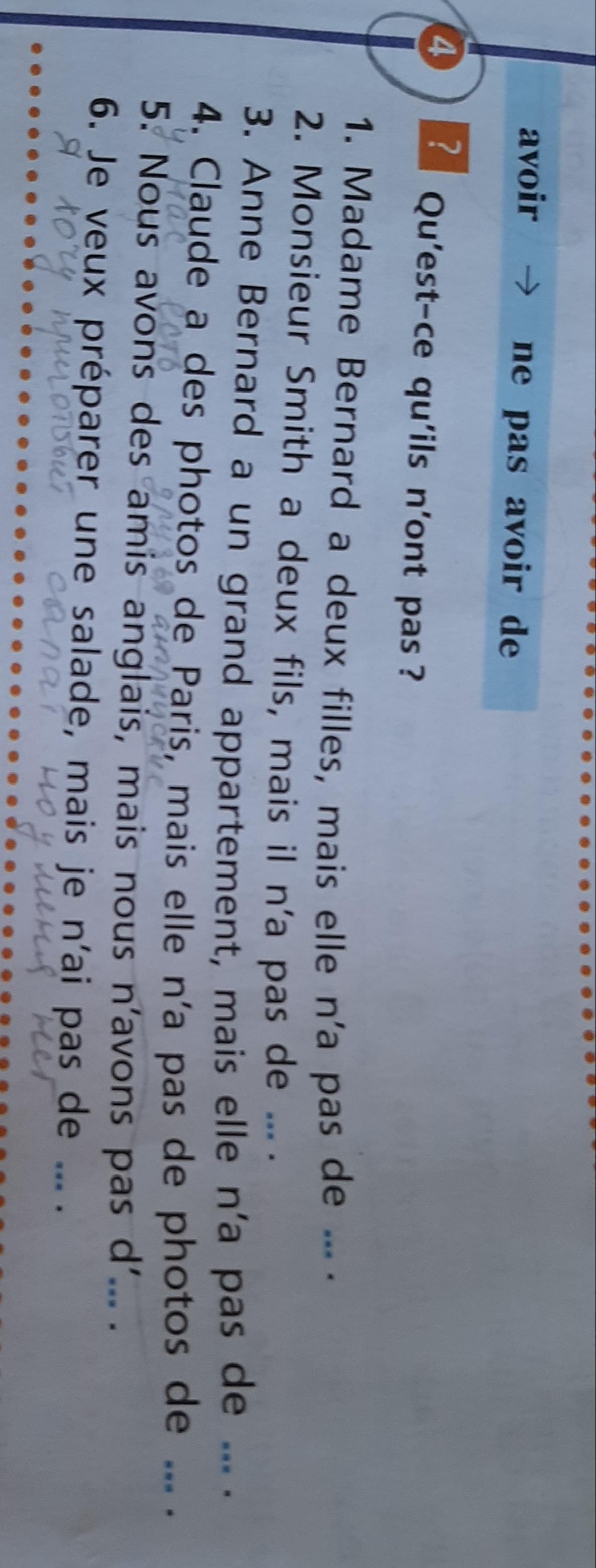 1 madame bernard a deux filles, mais elle n'a pas de fils