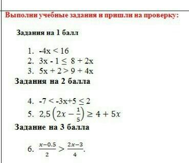 4)-7<-3x+5≤2 отнимем 5 от всех частей неравенства, а потом разделем все неравенства на -3
