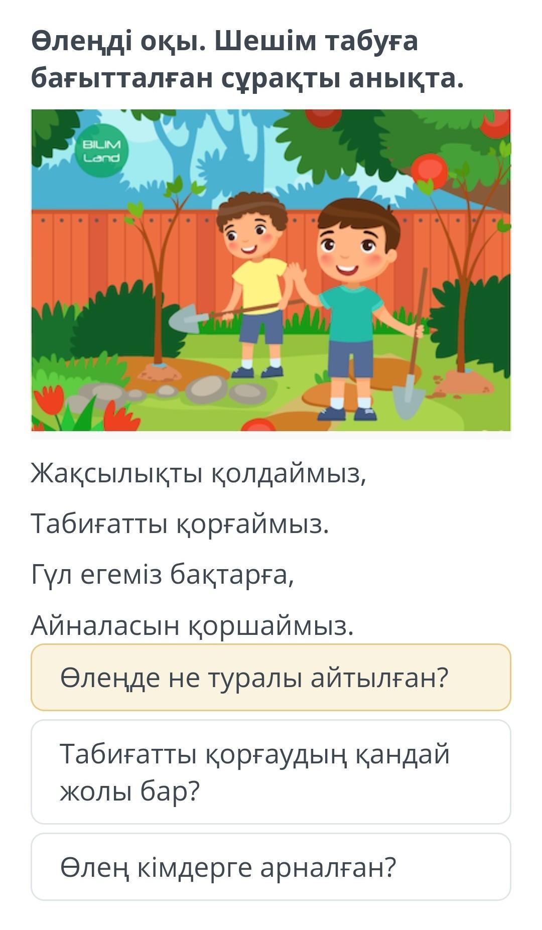Өлеңде табиғатты қорғау керек жайлы жазылған.