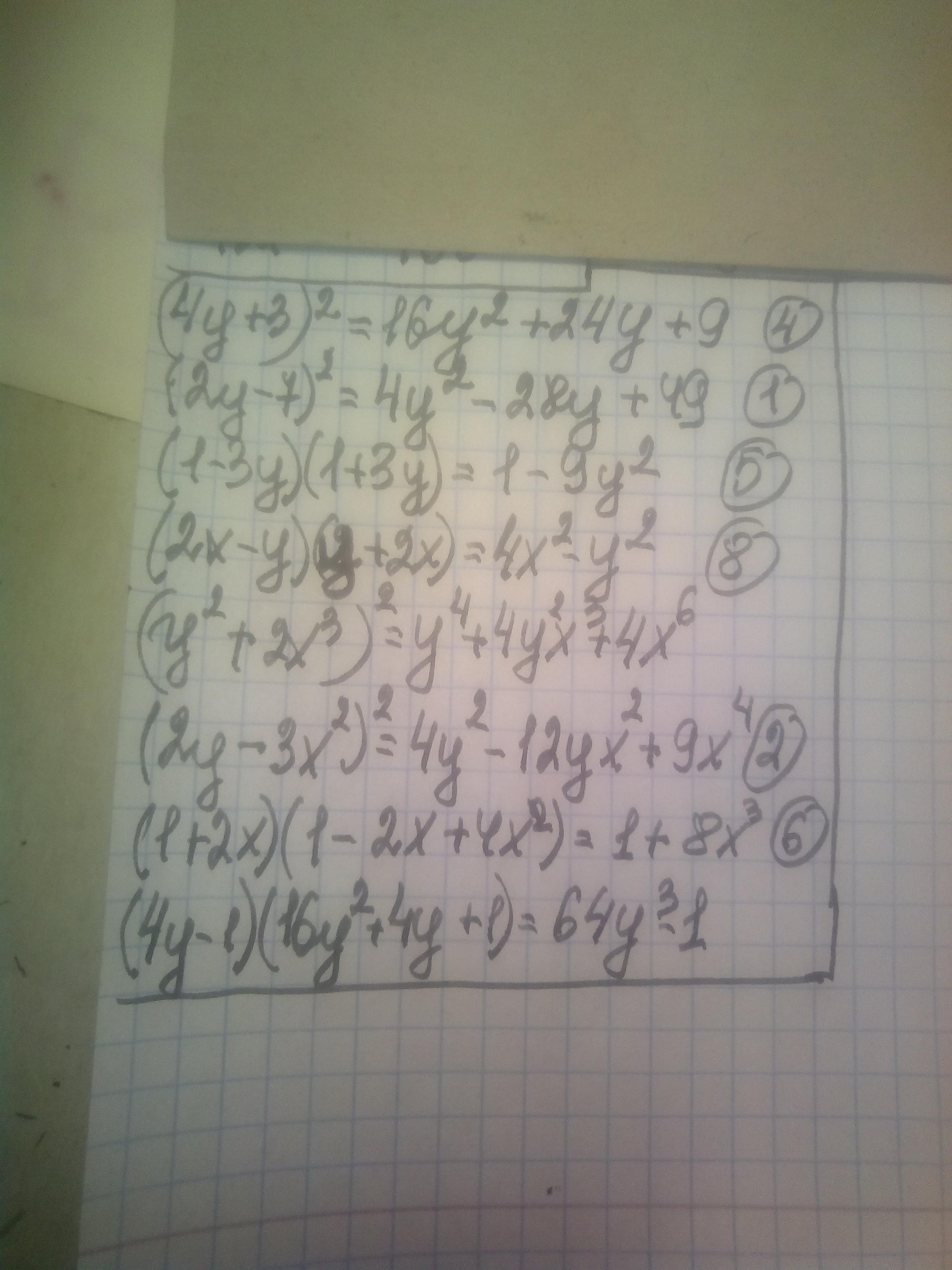3) (y^2 + 2x^3)^2 = y^4 + 4x^3y^2 + 4x^6