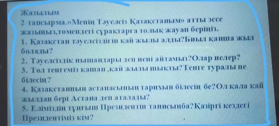 2 тапсырма.»Менің Тәуелсіз Қазақстаным» атты эссе