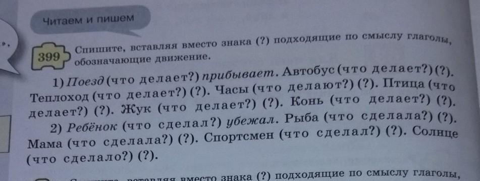 Спишите, вставляя вместо знака (?) подходящие по смыслу глонолы, обозначающие движения.