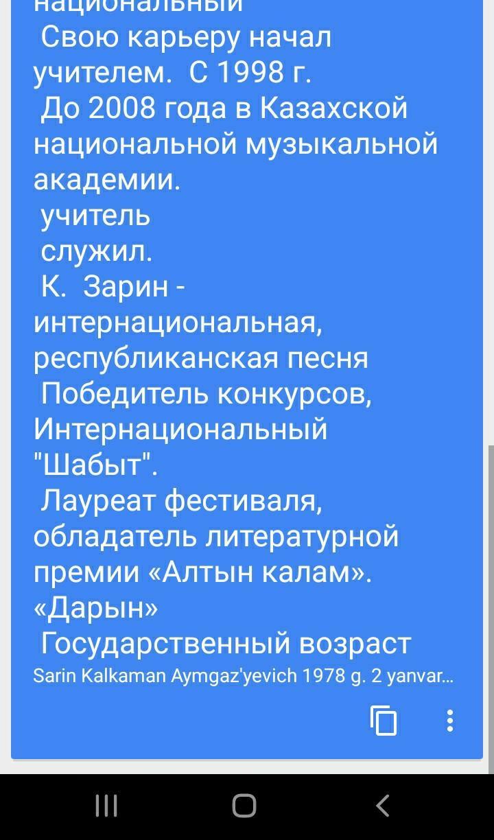 танылған «Қызыма», «Күзгі бақ», «Жібек сезім» және т.б. әндердің мәтінін жазған. СДЕЛАЙТЕ ПЕРЕВОД СРОЧНООО ПАЖАЛУЙСТА!!!! ДАЮ 10 БАЛЛОВ