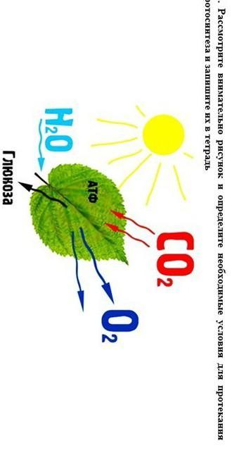 Свет, вода. В результате образуется энергия АТФ и кислород.
