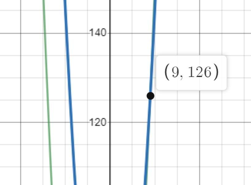 Координаты точки пересечения (9; 126)Значит абсцисса равна х=9.