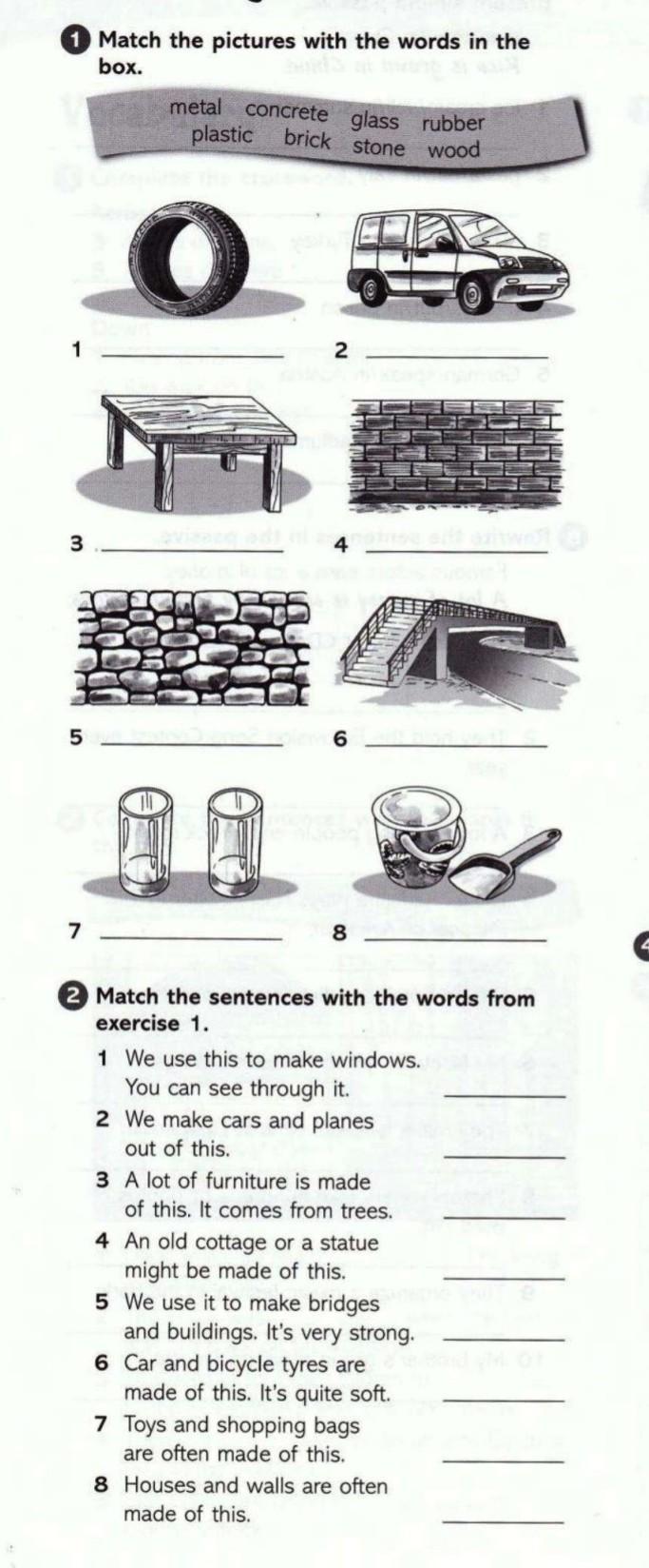 2 glass, metal, wood, stone, concrete, rubber, plastic, brick