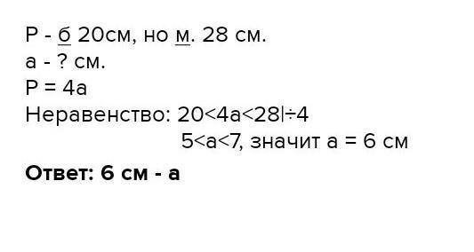 Периметр квадрата больше 20 см, но меньше 28 см. Оцените длину стороны квадрата.