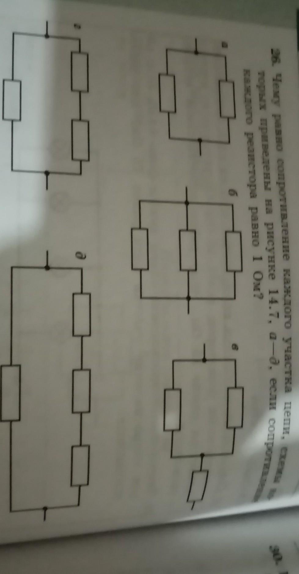 чему равно сопротивление каждого участка цепи, схемы которых приведены на рисунке 14.7, а-д, если сопротивление каждого резистора равно 1 Ом?